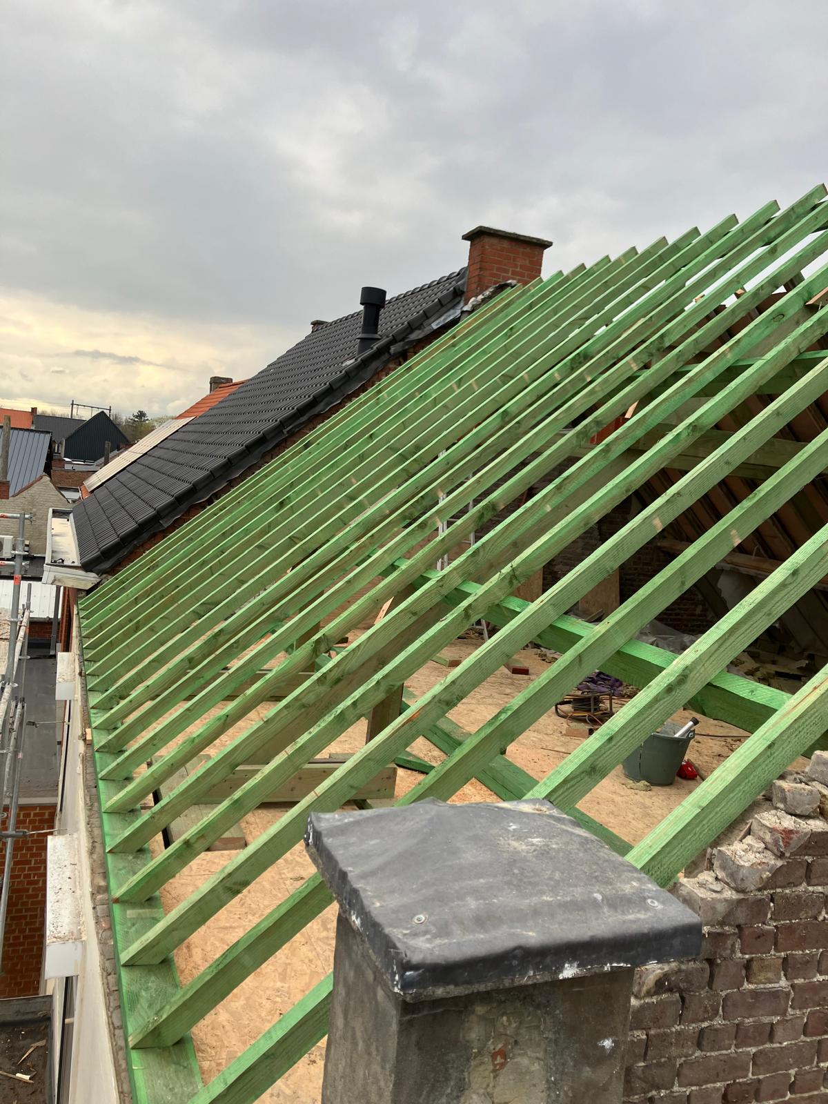 Vernieuwen dakconstructie keperdak. Plaatsen onderdoen + stormpan 44.